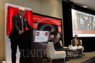 CIUDAD DE MÉXICO, 03OCTUBRE2017.- Julio Serrano, CFO de Siemens Mesoamérica, y Paulo Carreño, director general de ProMéxico, durante la conferencia para anunciar la participación de México en el festival de tecnología Hannover Messe 2018. Por ello, ProMéxico y el corporativo Siemens firmaron una alianza rumbo al festival FOTO: GALO CAÑAS /CUARTOSCURO.COM