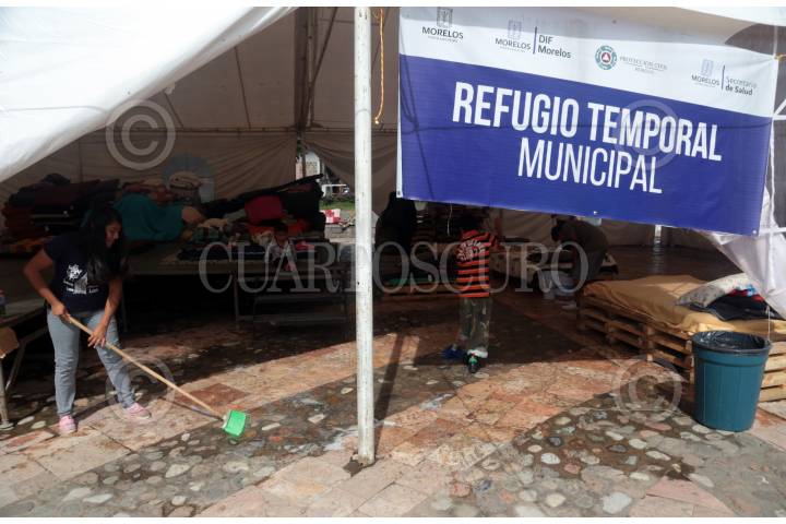 TOTOLAPAN, MORELOS, 03OCTUBRE2017.- Un estanque con cientos de lirios acuáticos junto a un salón de usos múltiples del barrio de San Agustín, que fue afectado por el sismo del pasado 19 de septiembre. FOTO: MARGARITO PÉREZ RETANA /CUARTOSCURO.COM