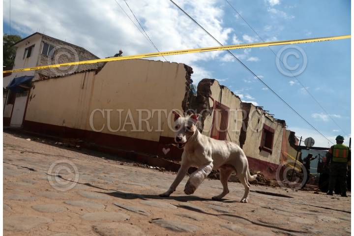 TOTOLAPAN, MORELOS, 03OCTUBRE2017.- Un estanque con cientos de lirios acuáticos junto a un salón de usos múltiples del barrio de San Agustín, que fue afectado por el sismo del pasado 19 de septiembre. FOTO: MARGARITO PÉREZ RETANA /CUARTOSCURO.COM