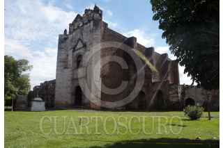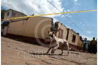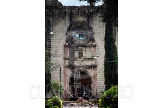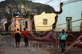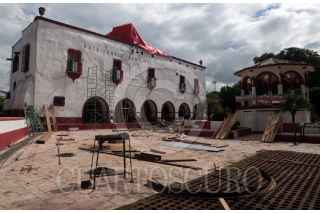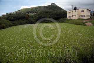 TOTOLAPAN, MORELOS, 03OCTUBRE2017.- Un estanque con cientos de lirios acuáticos junto a un salón de usos múltiples del barrio de San Agustín, que fue afectado por el sismo del pasado 19 de septiembre. FOTO: MARGARITO PÉREZ RETANA /CUARTOSCURO.COM