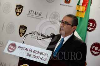 TOLUCA, ESTADO DE MÉXICO, 03OCTUBRE2017.- Alejandro Gómez Sánchez, titular de la Fiscalía General de Justicia del Estado de México, informó sobre la detención de 7 presuntos integrantes del grupo delictivo Nuevo Imperio, que operaba en el Valle de México, relacionados al menos con 10 homicidios y venta de droga, eran dirigidos por una mujer desde la Ciudad de México y un hombre radicado en los Estados Unidos. FOTO: ARTEMIO GUERRA BAZ /CUARTOSCURO.COM