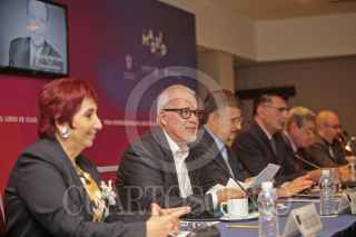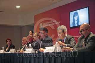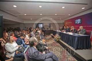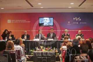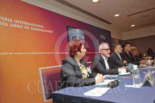 GUADALAJARA, JALISCO. 05OCTUBRE2017.- Raúl Padilla López Presidente de la Feria Internacional del Libro de Guadalajara (FIL), Tonatiuh Bravo Padilla Rector General de la Universidad de Guadalajara, Marisol Schuls Manaut Directora General de la Feria Internacional del Libro (FIL), Francisco Javier de Blas Zabaleta Vocal Asesor de la Coordinación General de la Alcaldía de Madrid, Héctor Raúl Solís Gadea Rector del Centro Universitario de Ciencias Sociales y Humanidades de la U. de G. e Igor Lozada Rivera Melo Secretario de Vinculación y Difusión cultural de la U. de G., encabezaron la conferencia de prensa para dar a conocer el programa general de actividades de la Feria Internacional del Libro de Guadalajara 2017 que se llevó a cabo en el Hotel Hilton. FOTO: FERNANDO CARRANZA GARCIA / CUARTOSCURO.COM