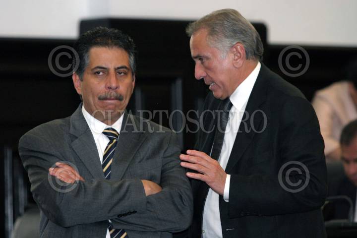MEXICO, D.F., 09SEPTIEMBRE2004.- Los senadores panistas Felipe de Jesús Vicencio y Juan José Rodríguez Pratts, durante la sesión en el Senado de la República. FOTO: Moisés Pablo/CUARTOSCURO.COM