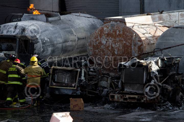 MELCHOR OCAMPO, ESTADO DE MÉXICO, 05OCTUBRE2017.- Una bodega y pipas se incendiaron presuntamente porque se almacenaba combustible de manera ilegal en el predio que colinda con los municipios de Melchor Ocampo, Tultepec y Cuautitlán. FOTO: ISRAEL GUTIÉRREZ /CUARTOSCURO.COM