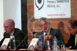 MEXICO, D.F., 09SEPTIEMBRE2004.- Carlos Puig, George Soros y Jesús Silva Herzog Marques, durante la conferencia del segundo sobre el rol de los EU sobre la comunidad internacional en la Universidad Iberoamericana. FOTO: Israel Rojas/CUARTOSCURO.COM