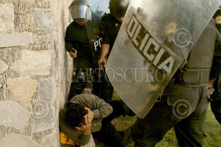 Chilpancingo, Guerreo, 09SEPTIEMBRE2004.- Aspectos del desalojo de maestros de la CETEG e integrantes de diversas organizaciones sociales por parte de elementos de la policía del estado y policía preventiva municipal. Los profesores bloquearon por más de 7 horas la autopista del sol para exigir al gobierno estatal y federal la solución a demandas, como el aumento salarial y créditos para viviendas. Foto: Oscar Alvarado/CUARTOSCURO.COM