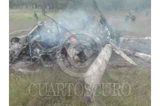 PUEBLO NUEVO, DURANGO.- Un helicóptero de la Secretaría de Defensa Nacional se desplomó la tarde de hoy en las inmediaciones del rancho Santa Isabel. FOTO: ESPECIAL /CUARTOSCURO.COM