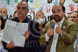 CIUDAD DE MÉXICO, 08OCTUBRE2017.- Alfredo Figueroa, y Emilio Álvarez Icaza, integrantes de la iniciativa colectiva e independiente “Ahora”, en conferencia de prensa anunciaron la participación del colectivo en 14 estados de la república para las elecciones a nivel local del próximo año. Emilio Álvarez Icaza confirmó que no será parte de la carrera presidencial como candidato independiente. FOTO: MARIO JASSO /CUARTOSCURO.COM