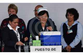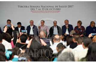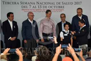 TLALNEPANTLA, ESTADO DE MÉXICO, 09OCTUBRE2017.- Alfredo del Mazo, gobernador del Estado de México, y José Narro Robles, secretario de Salud, encabezaron la jornada de vacunación en la escuela primaria Gabriela Mistral, como parte de la Tercera Semana Nacional de Salud 2017. FOTO: MARIO JASSO /CUARTOSCURO.COM