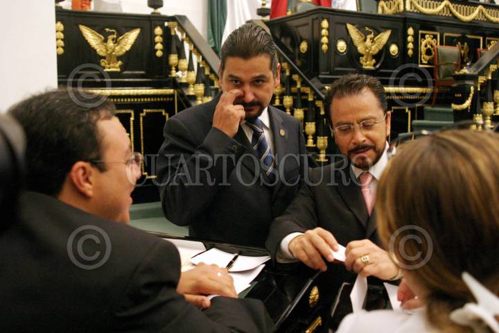 México, D.F., 10SEPTIEMBRE2004.- Alberto Trejo, PRD y Jorge García, asambleísta del PRI, durante la sesión del periodo extraordinario en la ALDF. FOTO: Moisés Pablo/CUARTOSCURO.COM