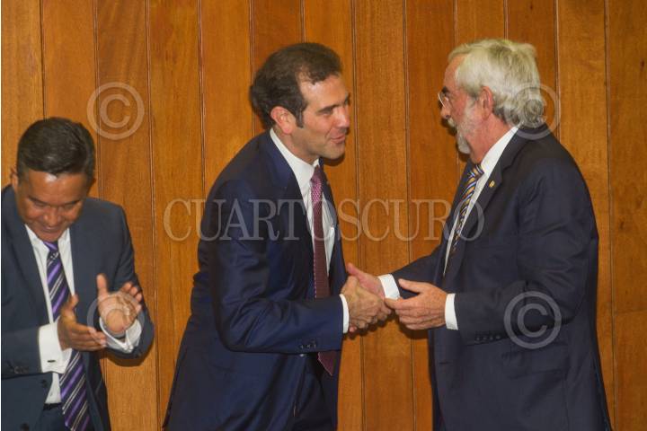 CIUDAD DE MÉXICO, 10OCTUBRE2017.- Lorenzo Córdova Vianello, consejero presidente del INE, Enrique Graue, rector de la UNAM, Janine Otálora, magistrada Presidenta del Tribunal Electoral del Poder Judicial de la Federación, durante la inauguración del foro “Política y elecciones en México: Cuatro décadas de logros y desafíos. Reflexiones a 40 años de la reforma de 1977”, en la Máxima Casa de Estudios. FOTO: ISAAC ESQUIVEL /CUARTOSCURO.COM