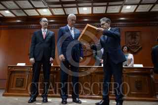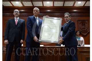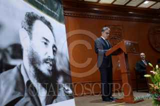 TOLUCA, ESTADO DE MÉXICO, 10OCTUBRE2017.- La Universidad Autónoma del Estado de México, encabezada por Alfredo Barrera Baca entregó el Doctorado Honoria Causa al Comandante Fidel Castro, ex presidente de Cuba, recibiendo el documento el embajador de Cuba en México Pedro Juan Núñez Mosquera. FOTO: ARTEMIO GUERRA BAZ / CUARTOSCURO.COM