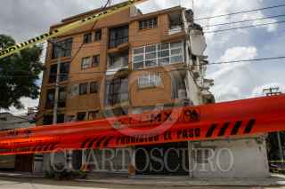 CIUDAD DE MÉXICO, 10OCTUBRE2017.- Ingenieros realizan estudios del edificio dañado en la calle de Concepción Beistegui, para su demolición sin que afecte a otras viviendas. FOTO: ISAAC ESQUIVEL /CUARTOSCURO.COM