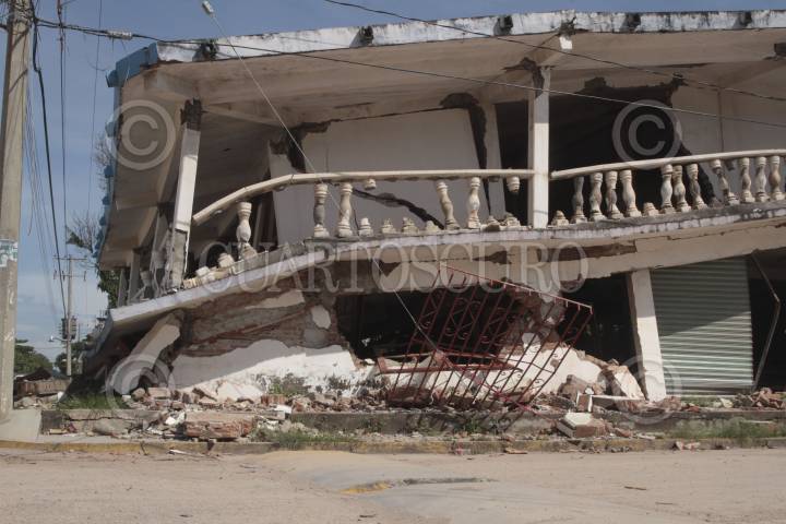 IXTALTEPEC, OAXACA, 11OCTUBRE2017.- Muchas de las casas fracturadas, durante el sismo del pasado 7 de septiembre, aún se observan sin ninguna intervención, algunos predios ya fueron limpiados de escombros. Muchas de las familias han improvisado casas de campañas a las afueras de lo que antes eran sus hogares, las réplicas del movimiento telurico continúan en esta zona lo que provoca una estado de alerta permanente entre la población, FOTO: MOISÉS PABLO