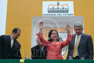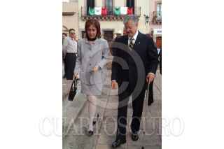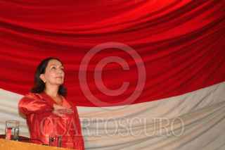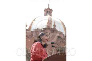 ZACATECAS, ZACATECAS 12SEPTIEMBRE2004.- Una zacatecana escucha el discurso de la gobernadora del estado, Amalia García Medina, en la plaza de armas. FOTO: Iván Stephens/CUARTOSCURO.COM