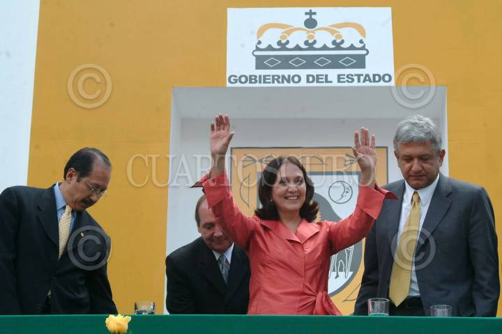 ZACATECAS, ZACATECAS 12SEPTIEMBRE2004.- Una zacatecana escucha el discurso de la gobernadora del estado, Amalia García Medina, en la plaza de armas. FOTO: Iván Stephens/CUARTOSCURO.COM