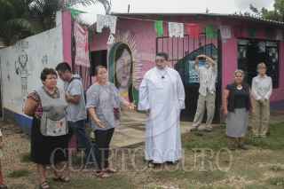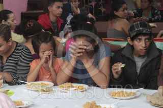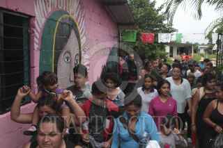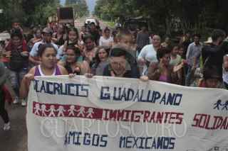 AMATLAN, VERACRUZ, 12OCTUBRE2017.- El Viacrucis Guadalupano Migrante llegó por la tarde a la casa de Las Patrona; un grupo de mujeres que lanzan bolsas de comida a los migrantes que viajan en el tren "La Bestia", aquí los integrantes de este contingente integrado que partió el pasado lunes de Tapachula, Chiapas, pudieron comer y tomar un descanso. Estos peregrinos centroamericanos pretenden llegar a la Ciudad de México el día de mañana, para sostener una reunión con senadores de la República, y luego seguir su camino hacia la frontera norte. Durante su paso por el país se han participado en la remoción de escombros de las casas destruidas por los sismos de septiembre. En la imagen Norma Romero de las Patronas le da la bendición al Hermano José. FOTO: MOISÉS PABLO /CUARTOSCURO.COM