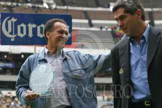 MEXICO, D.F. 12SEPTIEMBRE2004.- José Alvarez el "Lobo solitario" recibió un reconocimiento por su trayectoria profesional por parte del Club América, antes de dar inicio con el encuentro de las Aguilas y el equipo de Puebla, que ganó 1 por 0. FOTO:Sandra Perdomo/CUARTOSCURO.COM