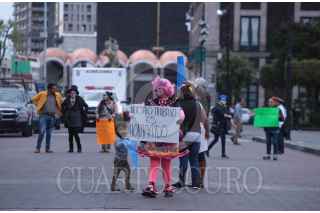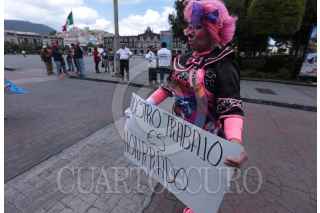 TOLUCA, ESTADO DE MÉXICO, 13OCTUBRE2017.- Pinta caritas que habitualmente trabajan los fines de semana en la Concha Acústica y la Plaza González Arratia se manifestaron frente al palacio municipal de Toluca, exigiendo los deje trabajar el alcalde Fernando Zamora, ya que son acosados por inspectores del ayuntamiento; bloquearon por algunas horas la avenida Independencia. FOTO: ARTEMIO GUERRA BAZ / CUARTOSCURO.COM
