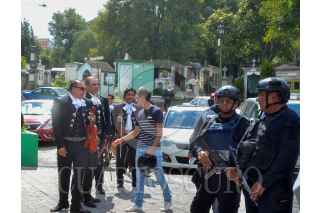 CIUDAD DE MÉXICO, 13OCTUBRE2017.- Un gran operativo por parte del equipo de fuerza de tarea de la SSP, resguardaron las inmediaciones del panteón Dolores tras la llegada del cuerpo de Francisco Javier Hernández Gómez alias "Pancho Cayagua" presunto líder y ex-fundador del grupo criminal "La Unión de Tepito". FOTO: ARMANDO MONROY /CUARTOSCURO.COM