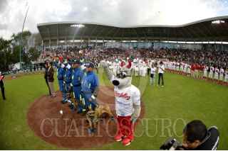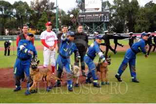 CIUDAD DE MÉXICO, 13OCTUBRE2017.- Los binomios de la Armada de México fueron reconocidos por el equipo de los Diablos Rojos en la inauguración de la Liga Invernal Méxicana. FOTO: ENRIQUE GUTIERREZ /DR /CUARTOSCURO.COM