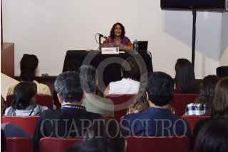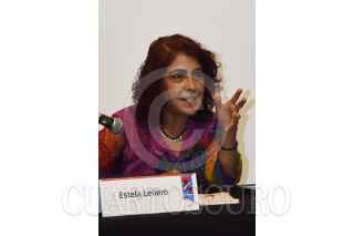 GUANAJUATO, GUANAJUATO, 14OCTUBRE2017.- La dramaturga y escritora mexicana Estela Leñero, durante su participación en la conferencia "El proceso creativo de la obra teatral. Derrota luminosa, la Revolución Anarquista de los Flores Magón" impartida en el Museo Casa Diego Rivera, como parte de las actividades de la edición 45 del Festival Internacional Cervantino. FOTO: MARIO JASSO /CUARTOSCURO.COM