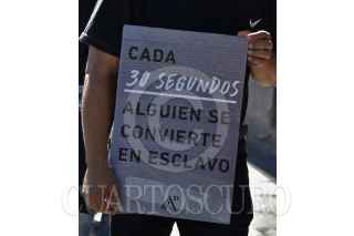 GUANAJUATO, GUANAJUATO, 14OCTUBRE2017.- Un grupo de integrantes de la organización social "Walk For Freedom" (Caminando por la libertad), se manifestaron en forma silencioa sobre avenida Benito Juárez del Centro de Guanajuato, para denunciar la esclavitud, la trata de personas y explotación laboral en el mundo. FOTO: MARIO JASSO /CUARTOSCURO.COM
