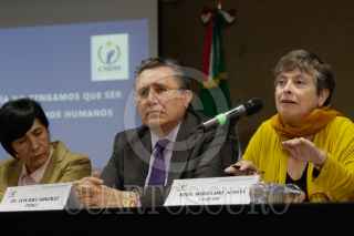CIUDAD DE MÉXICO, 14OCTUBRE2017.- Luis Raúl González Pérez titular de la CNDH acompañado de Edgar Corzo, Ernesto López Portillo, Rocío Culebro, Mariclaire Acosta y Michael Chamberlin, presentaron una campaña en favor de las y los defensores civiles de derechos humanos a fin de dar cumplimiento a uno de los puntos de la Recomendación General 25, los gobiernos federal y estatal. FOTO: CNDH /CUARTOSCURO.COM