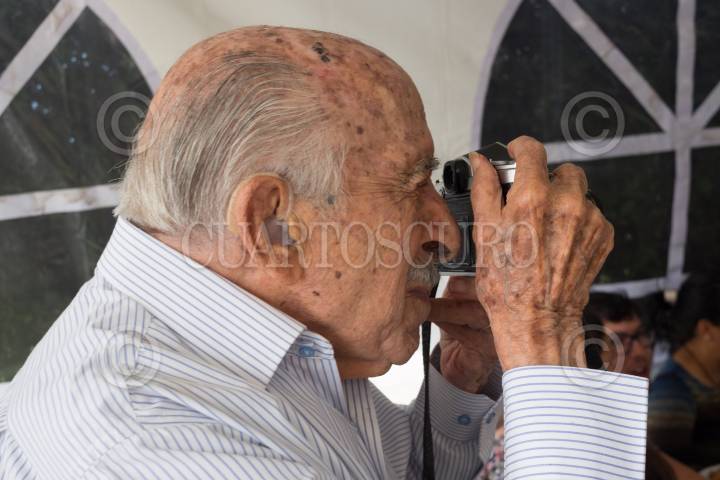 ATLIXCO, PUEBLA, 14OCTUBRE2017.- Julio Mayo, fotógrafo, celebró hoy sus primeros 100 años acompañado de su familia y amigos cercanos. Además de cantar y recordar sus años como teniente del ejercito Repúblicano. FOTO: ANA LUISA ANZA / CUARTOSCURO.COM