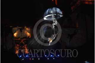 ZACATECAS, ZACATECAS, 15OCTUBRE2017.- En la Plaza de Armas se inauguró la Feria Internacional de Teatro de Calle Zacatecas 2017, los encargados de echar andar el encuentro fue el grupo español Puja con la obra "Quixote". Esta reunión teatral congregará 15 agrupaciones; 3 Zacatecas, 7 nacionales y cuatro internacionales, y los escenarios serán plazas, calles, jardines, el encuentro se extenderán a 12 municipios del estado. FOTO: CARLOS SEGURA /CUARTOSCURO.COM