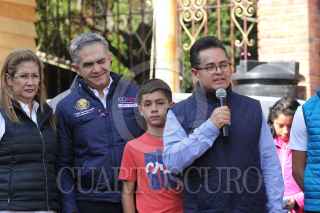 CIUDAD DE MÉXICO, 15OCTUBRE2017.- Miguel Ángel Mancera, jefe de gobierno de la Ciudad de México, acudió a la zona de Santa Rosa Xochiac, delegación Álvaro Obregón para verificar la construcción de viviendas antisísmicas tras los derrumbes consecuencia del temblor del pasado 19 de septiembre. FOTO: GALO CAÑAS /CUARTOSCURO.COM