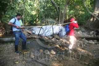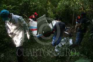 COYUCA DE BENITEZ, GUERRERO, 16OCTUBRE2017.- Autoridades confirmaron el hallazgo de la avioneta tipo Cessna modelo 152 de matrícula XB-MZN C15, perdida desde el primero de septiembre pasado, en el municipio de Coyuca de Benítez, mientras dos pilotos pertenecientes a la Escuela de Aviación Acapulco, efectuaban un vuelo entre Zihuatanejo y Acapulco. En la avioneta viajaban Hugo Alfredo Acuña Ortiz, de 21 años, originario de Zacatecas; y Jesús Fernando Rivera García, de 20 años, originario de Durango; instructor y estudiante. FOTO: BERNANDINO HERNÁNDEZ /CUARTOSCURO.COM