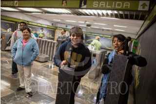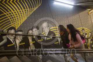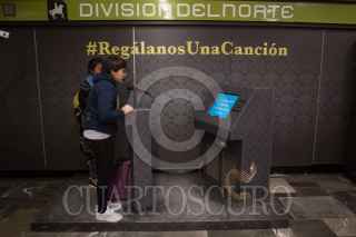 CIUDAD DE MÉXICO, 17OCTUBRE2017.- Aspectos de la exposición Autores y Compositores de México que se encuentra abierta al público y de manera gratuita en las intalaciones del Transporte Colectivo Metro, estación División del Norte de a linea tres. La exposción ocupa el total de escaleras, paredes y vitrinas de la estación y cuenta con rockola-karaoke, la cual puede ser utilizada por cualquier usuario del metro. FOTO: TERCERO DÍAZ /CUARTOSCURO.COM