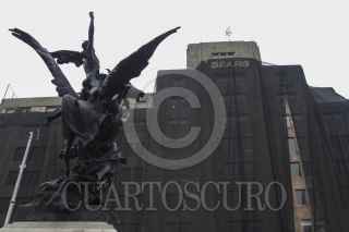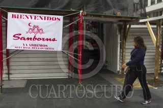 CIUDAD DE MÉXICO, 18OCTUBRE2017.- Sobre avenida Juárez se observa el edificio de la tienda Sears cubierto con una tela negra, este inmueble resultó dañado por el sismo del pasado 19 de septiembre, y esta siendo sometido a una remodelación, su restaurante ya anuncia que esta dando servicio. FOTO: MOISÉS PABLO /CUARTOSCURO.COM