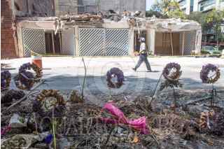 CIUDAD DE MÉXICO, 18OCTUBRE2017.- A un mes del sismo, así luce las ruinas del edificio de ocho pisos colapsado en la calle Laredo de la colonia Condesa. En la capital aún se encuentran muchas zonas acordonadas y edificios desalojados a la espera de ser derrumbados por las autoridades, debido al daño irreparable que sufieron durante el terremoto. FOTO: TERCERO DÍAZ /CUARTOSCURO.COM
