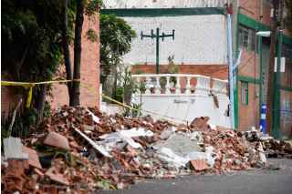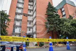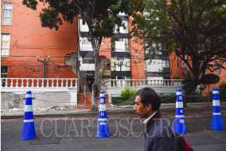 CIUDAD DE MÉXICO, 18OCTUBRE2017.- A casi un mes del sismo registrado en la capital, en diversos edificios de la colonia Narvarte prevalece el riesgo de colpaso. En la imagen , elementos de seguridad pública continúan resguardando la zona. FOTO: MARIO JASSO /CUARTOSCURO.COM