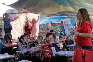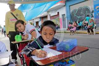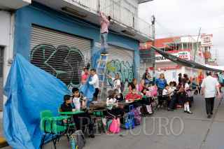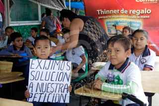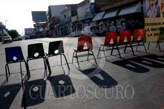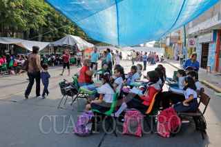 TUXTLA GUTIERREZ, CHIAPAS, 19OCTUBRE2017.- Maestros y padres de familia de la escuela primaria Juan Benavides, bloquearon la avenida central entre 9a y 11a oriente, para exigir al gobierno un dictamen especializado que garantice la seguridad de los alumnos, debido a que la institución sufrió daños estructurales durante el pasado terremoto del 7 de septiembre. Esta manifestación escolar se suma a la de la escuela primaria "Restauramiento de la República" en la 5a Norte y 16a Poniente, y a la del Jardín de Niños "Nicolas Bravo", en la 9a Sur y Calzada Samuel León Brindis, en la capital chiapaneca. FOTO: JACOB GARCÍA /CUARTOSCURO.COM