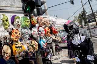 CIUDAD DE MÉXICO, 19OCTUBRE2017.- Debido a que se acerca el 31 de octubre, Noche de Brujas, Halloween en ingles, en diversas esquinas de las calles de la ciudad comerciantes se encuentran vendiendo disfraces y máscaras de personajes de terror. FOTO: TERCERO DÍAZ /CUARTOSCURO.COM