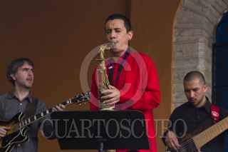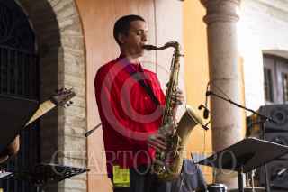 GUANAJUATO, GUANAJUATO, 20OCTUBRE2017.- La banda de jazz Hugo Fernández Quartet se presentó en la Ex Hacienda de San Gabriel Barrera, dentro del programa musical del 45 Festival Internacional Cervantino. Hugo Fernández, Diego Franco, Jorge Servín y Miguel Rodríguez ejecutaron diversos ritmos, terminaron jazzeando "México Lindo y Querido", para ellos el tocar es algo tan sencillo com "Círculos y Triángulos", que ha decir de su líder es como un resumen de la historia de todos los pueblos en el mundo, ya que estas figuras se encuentran en todas las culturas. FOTO: MOISÉS PABLO /CUARTOSCURO.COM
