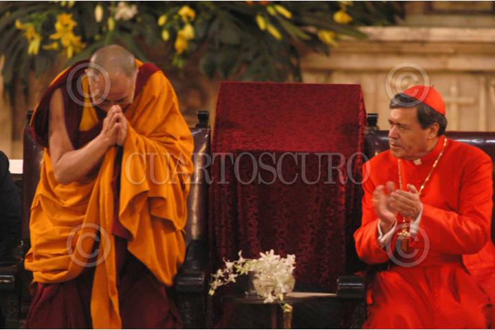 MEXICO D.F. 04OCTUBRE2004.- En la catedral metropolitana se realizo la plegaria por la paz, el lider religioso Dalai Lama es acompañado por el cardenal Norberto Rivera. FOTO: Germán Romero/CUARTOSCURO.COM