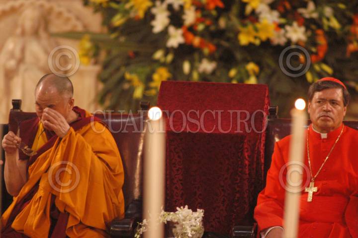 MEXICO D.F. 04OCTUBRE2004.- En la catedral metropolitana se realizo la plegaria por la paz, el lider religioso Dalai Lama es acompañado por el cardenal Norberto Rivera. FOTO: Germán Romero/CUARTOSCURO.COM