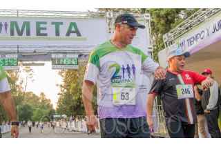 CIUDAD DE MÉXICO, 21 OCTUBRE 2017.- José Calzada Rovirosa, titular de la SAGARPA, participó en la segunda edición de la carrera de esa secretaría. En la que participaron alrededor de 2000 trabajadores y familiares en un circuito de 10 kilómetros. En la imagen la delegada en Miguel Hidalgo Xochitl Gálvez acompaña al funcionario al termino de la carrera. FOTO: ANDRÉS YÁÑEZ /CUARTOSCURO.COM