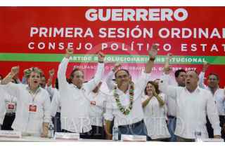 CHILPANCINGO, GUERRERO.21OCTUBRE2017.- Héctor Astudillo Flores, gobernador del estado acompañado de Heriberto Huicochea, dirigente estatal del Comite del PRI en Guerrero, lFlor Añorve Ocampo, diputada y Gabriela Bernal Reséndiz secretaria general del Pri, encabezaron la primera sesión ordinaria del Consejo Político Estatal. FOTO: JOSÉ I. HERNÁNDEZ /CUARTOSCURO.COM