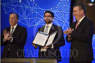CIUDAD DE MÉXICO, 23OCTUBRE2017.- José Antonio Meade, secretario de Hacienda y Crédito Público; Jaime González Aguade, presidente de la Comisión Nacional Bancaria y de Valores (CNBV), y Alejandro Díaz de León Carrillo, subgobernador, miembro de la Junta de Gobierno del Banco de México, durante la inauguración del foro Ciber Seguridad en el cual se exponen temas para fortalecer la seguridad en los medios de comunicación tecnológicos. FOTO: MARIO JASSO /CUARTOSCURO.COM