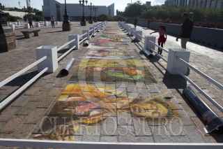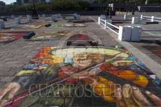 MONTERREY, NUEVO LEÓN, 23OCTUBRE2017.- Más de 40 artistas plasmaron dibujos de pinturas famosas o creadas por ellos mismos en el asfalto de la Macroplaza como actividad del Festival Bella Vía fundada en 2004. Esta expresión de las Artes de la Calle, tiene como misión principal estimular la formación de públicos y acercar el arte a la población. FOTO: GABRIELA PÉREZ MONTIEL /CUARTOSCURO.COM