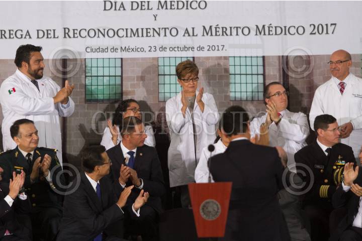 CIUDAD DE MÉXICO, 23OCTUBRE2017.- El Jefe del Ejecutivo Enrique Peña Nieto les brindó un apluso a los médicos que no interrumpieron sus respectivas operaciones en el momento justo del sismo del pásado 19 de septiembre, durante la celebración del Día del México, en la Secretaría Salud. FOTO: MOISÉS PABLO /CUARTOSCURO.COM