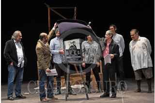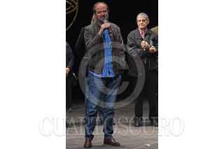 CIUDAD DE MÉXICO, 23OCTUBRE2017.- Los actores Joaquín Cossio y José María de Tavira, durante la obra La desobediencia de Marte del escritor Juan Villoro, previo a la develación de la placa en el teatro Helénico. FOTO: SECRETARIA DE CULTURA /CUARTOSCURO.COM