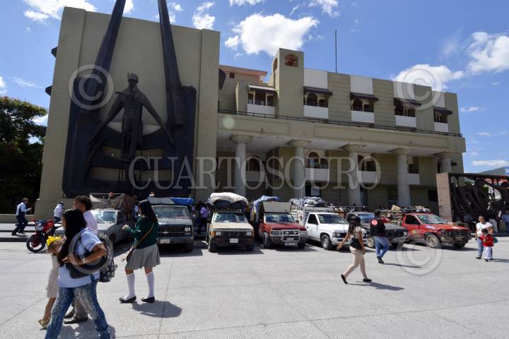 CHILPANCINGO, GUERRERO, 23OCTUBRE2017.- Recolectores de basura conocidos como: “La Basura” que prestan el servicio por cooperación, protestaron frente al ayuntamiento y estacionaron doce camionetas en la plaza cívica del Primer Congreso de Anáhuac. FOTO: JOSÉ I. HERNÁNDEZ / CUARTOSCURO.COM