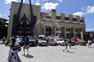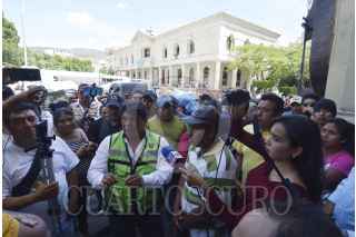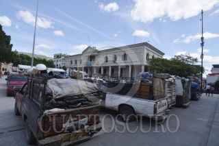 CHILPANCINGO, GUERRERO, 23OCTUBRE2017.- Recolectores de basura conocidos como: “La Basura” que prestan el servicio por cooperación, protestaron frente al ayuntamiento y estacionaron doce camionetas en la plaza cívica del Primer Congreso de Anáhuac. FOTO: JOSÉ I. HERNÁNDEZ / CUARTOSCURO.COM