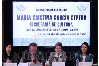 CIUDAD DE MÉXICO, 24OCTUBRE2017.- María Cristina García Cepeda, titular de la Secretaria de Cultura, compareció ante la comisión de Cultura de la Cámara de Diputados en el marco de la glosa del quinto informe de gobierno del presidente Enrique Peña Nieto. FOTO: SAÚL LÓPEZ /CUARTOSCURO.COM